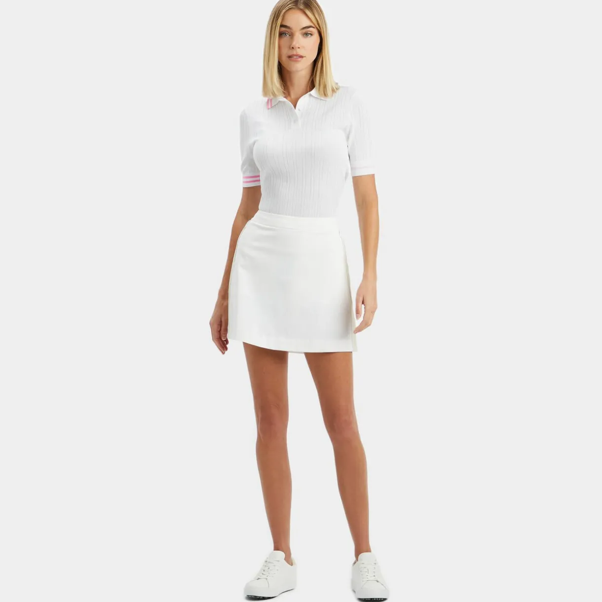 Step Up Your Polo Game With This Versatile Ribbed Knit. Featuring A Contrasting Colour Stripe Trim, This Exclusive Style Is Made From A Breathable Cotton Blend For Long Days On The Greens. Pair With The Stretch Tech Twill Mid Rise Straight Leg Trouser For The Course Or Go Casual And Pair With Denim.