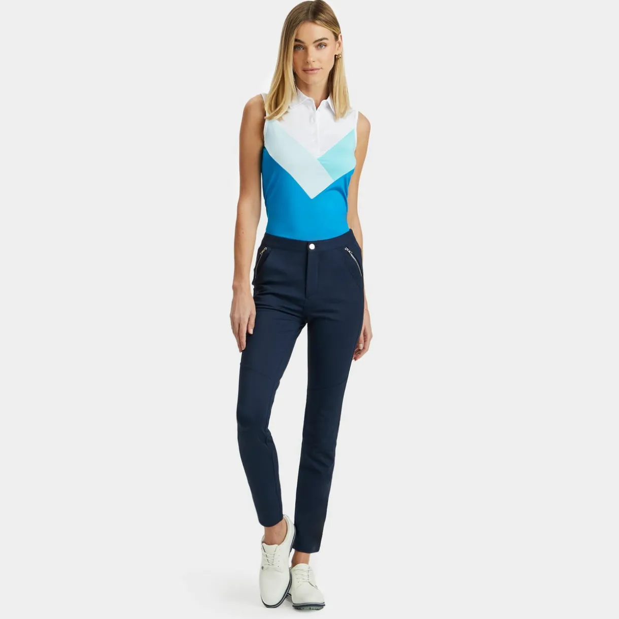Enjoy An Uninhibited Swing With The Tech Jersey Sleeveless Polo. Equipped With Antimicrobial, Moisture Wicking, And 4-Way Stretch Properties For Maximum Comfort And Mobility, It’s A Golfer’s Essential—And A Classic Never Goes Out Of Style. Wear This Colour Block Variation With The Popular Silky Tech Nylon A-Line Skort For Easy Pairing.