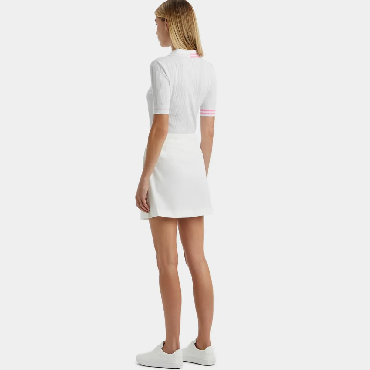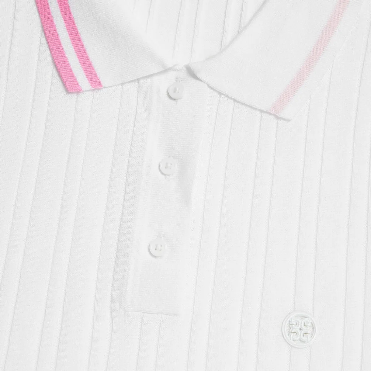Step Up Your Polo Game With This Versatile Ribbed Knit. Featuring A Contrasting Colour Stripe Trim, This Exclusive Style Is Made From A Breathable Cotton Blend For Long Days On The Greens. Pair With The Stretch Tech Twill Mid Rise Straight Leg Trouser For The Course Or Go Casual And Pair With Denim.