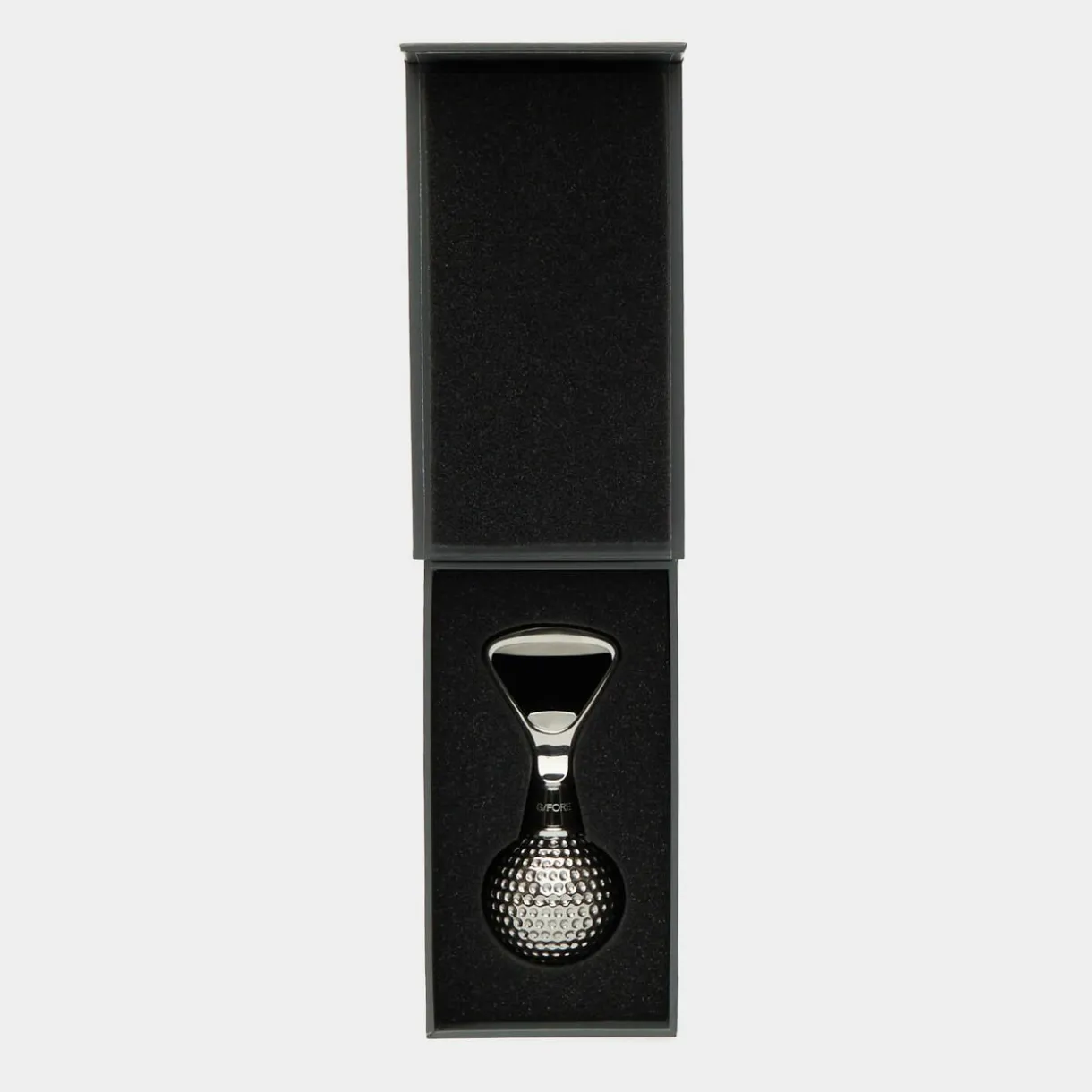 Tis The Season For Poppin’ Bottles. The Metal Golf Ball Bottle Opener Features G/Fore Engraving And Golf Ball Dimple Details. It Also Conveniently Comes In A Gift Ready Box.